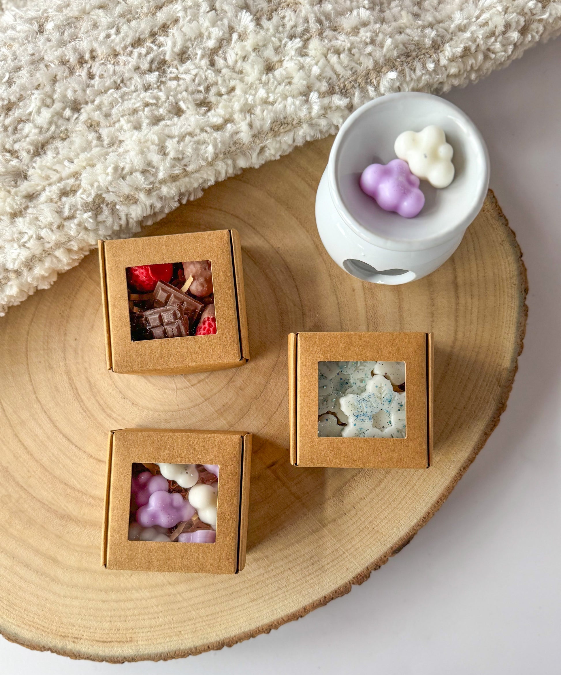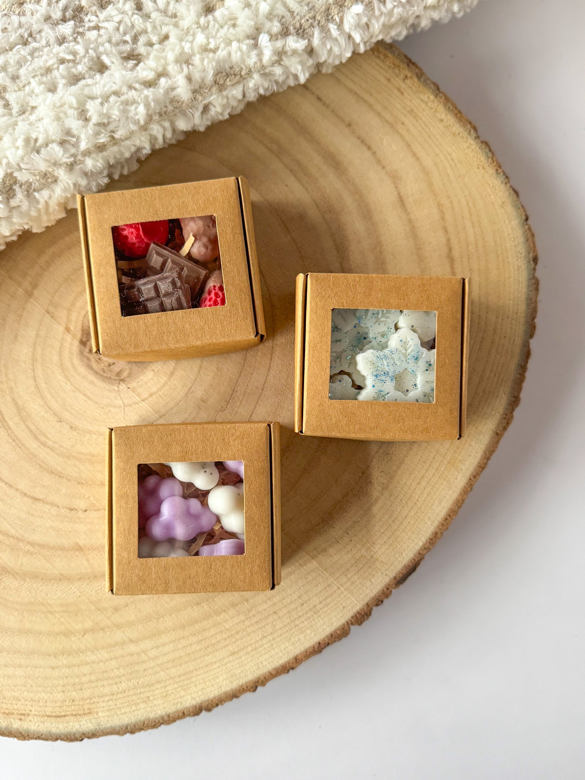 - 3 caixas com Wax Melts artesanais (20-25g cada caixa, com aromas à tua escolha)