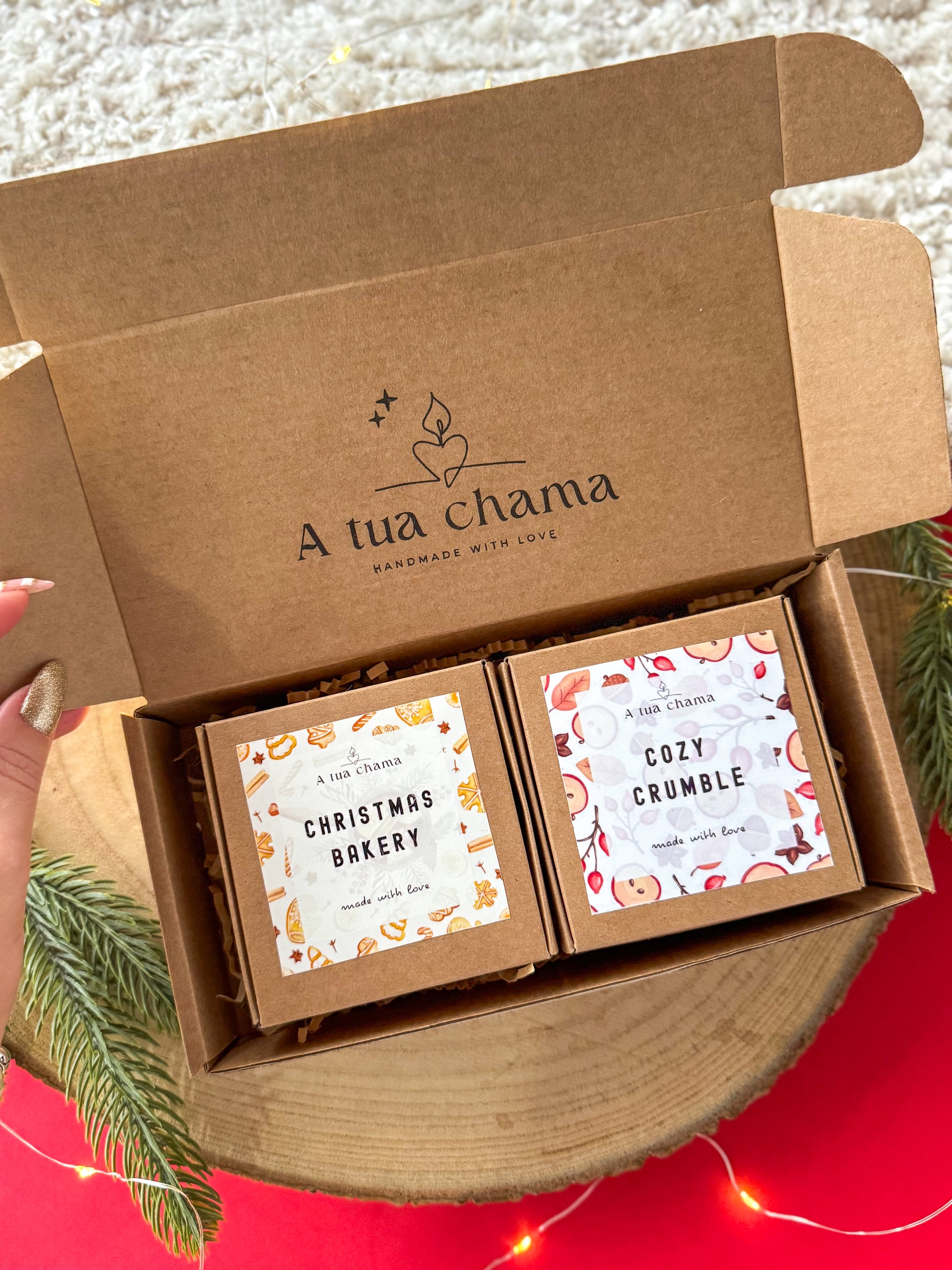 A Essential Duo Box reúne duas caixas de 50g de wax melts artesanais, feitas com cera 100% de soja e fragrâncias premium. Aqui, és tu quem escolhe os aromas — para criares a combinação perfeita para o teu mood, a tua casa e os teus momentos!
