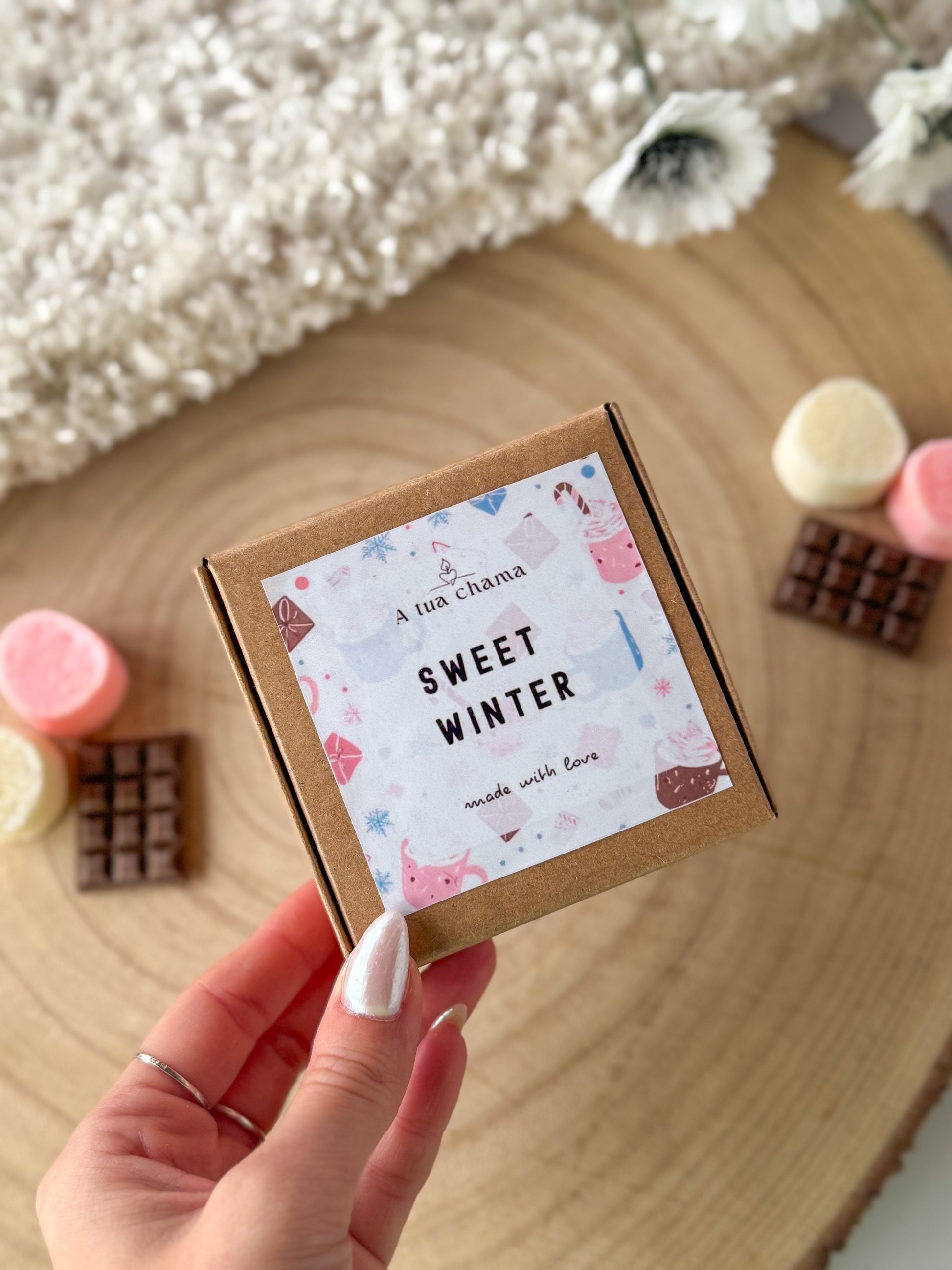 Sweet Winter foi criado para envolver — aquele cheiro doce e suave que faz a casa parecer mais quente, mesmo nos dias frios.